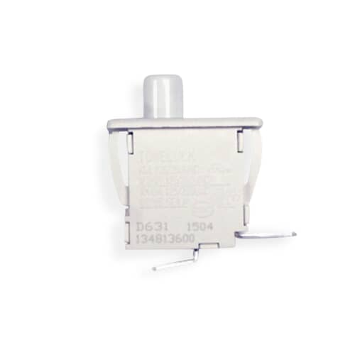 Ensure the interior light or door interlock system functions correctly with the genuine Electrolux 134813600 Door Switch. This OEM momentary push-button switch is commonly used in refrigerator doors to activate the interior lamp when the door opens, or as a safety interlock in other appliances.