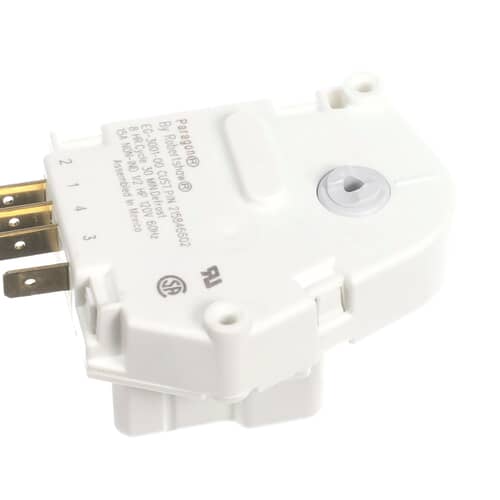 Ensure proper refrigerant cycle management with the genuine Electrolux 215846602 Defrost Timer. This mechanical timer controls when the refrigerator or freezer transitions from cooling mode to defrost mode, typically cycling every 8 hours for 30 minutes.