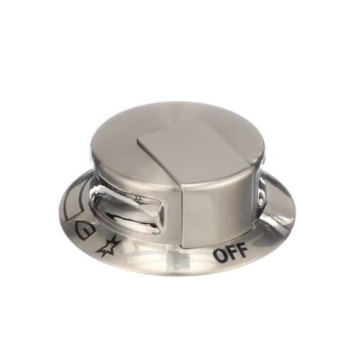 Restore precise flame adjustment and a modern look to your cooktop with the Electrolux 318905202 Burner Knob. This genuine OEM knob features a metallic, stainless steel-look finish and is designed to fit the top burner gas valves on various Electrolux, Frigidaire, and compatible ranges. The knob accepts a **D-shaped shaft** and provides clear control over the gas flow, ensuring reliable flame adjustment from ignition (LITE) through low and high settings.