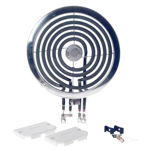 Restore quick, efficient heat to the smaller burner on your electric range with theGE WB30X356 6-Inch Coil Surface Element Kit. This genuine OEM part is rated for 1350 Watts and includes a three-wire terminal connection, making it suitable for elements wired to certain single-speed infinite switches. The coil design provides focused and consistent heat for simmering or small cookware, easily fixing burners that are slow to heat or have completely failed.