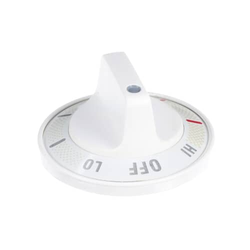 Restore reliable heat adjustment to your electric cooktop with the GE WB3K5243 Electric Range Surface Element Knob. This genuine OEM-style white plastic knob is designed for the infinite control switches that regulate the surface heating elements. The knob features a simple pointer line to indicate the heat setting (which is typically marked on the control panel overlay). It fits securely onto a standard D-shaped control shaft and should be replaced if the original knob is cracked, missing, or fails to grip the metal shaft correctly.