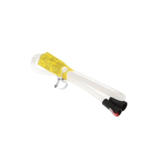 Ensure your dishwasher drains completely and prevents leaks with the GE WD24X10045 Dishwasher Drain Tube Assembly. This genuine OEM part is the flexible hose responsible for carrying wastewater from the dishwasher sump area to the air gap or drain connection under the sink. The assembly typically includes the hose itself, black rubber fittings, and a hose clamp for a secure, leak-free connection to the pump and drain line.