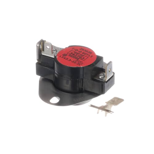 Protect your dryer and clothing from excessive heat with the genuine Whirlpool 279054 Dryer High Limit Thermostat. This critical safety device is designed to permanently cut power to the heating element if the temperature inside the dryer exceeds a predetermined safe limit, preventing damage and fire risks.